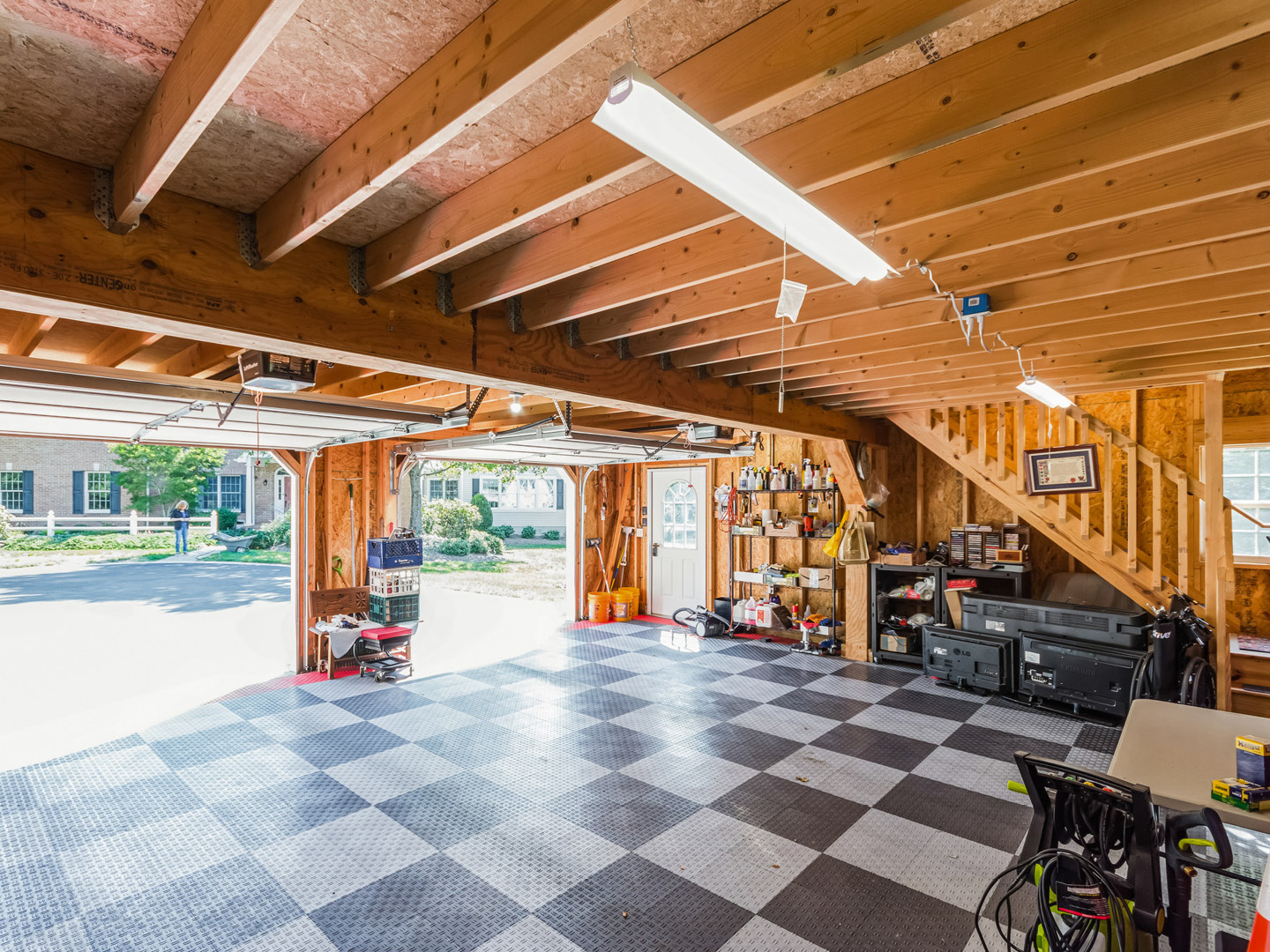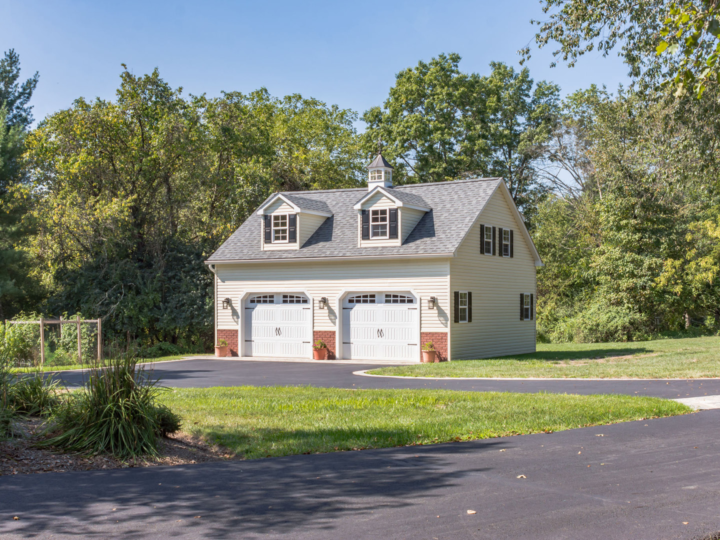 Beauty meets functionality. This garage perfectly blends colors and accents while providing lots of space. Its two smaller dormers on the front and one large dormer on the back make the second floor practical and spacious.