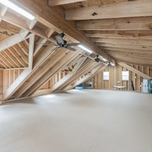 Our standard 2 story a-frame garage was customized and TGI floor joists were added to provide a completely open 1st floor without any supports. With higher 12’ walls and no supports, it gives a huge 1st floor layout.