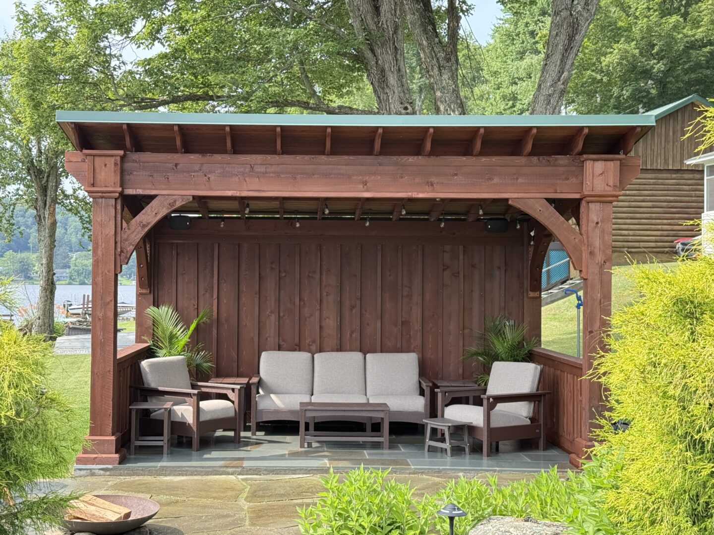 The Sante Fe Pavilion offers sturdy construction and ample space, ideal for outdoor gatherings or relaxation.