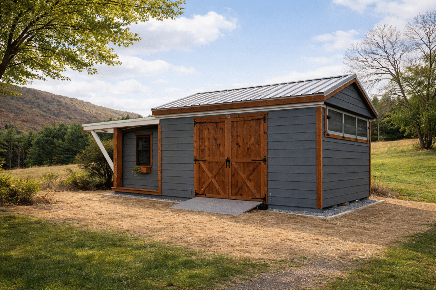 • (Example Deck Size:: 12×14 Shed has 12×7 Deck Area)