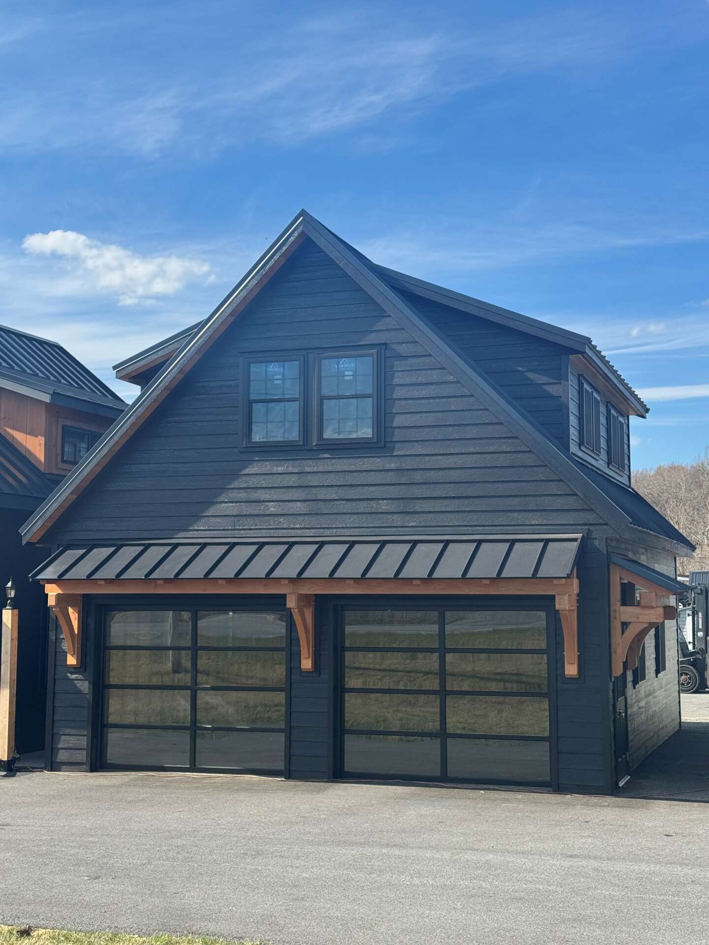 22′ Timber Frame Pent Roof Over the Garage Doors