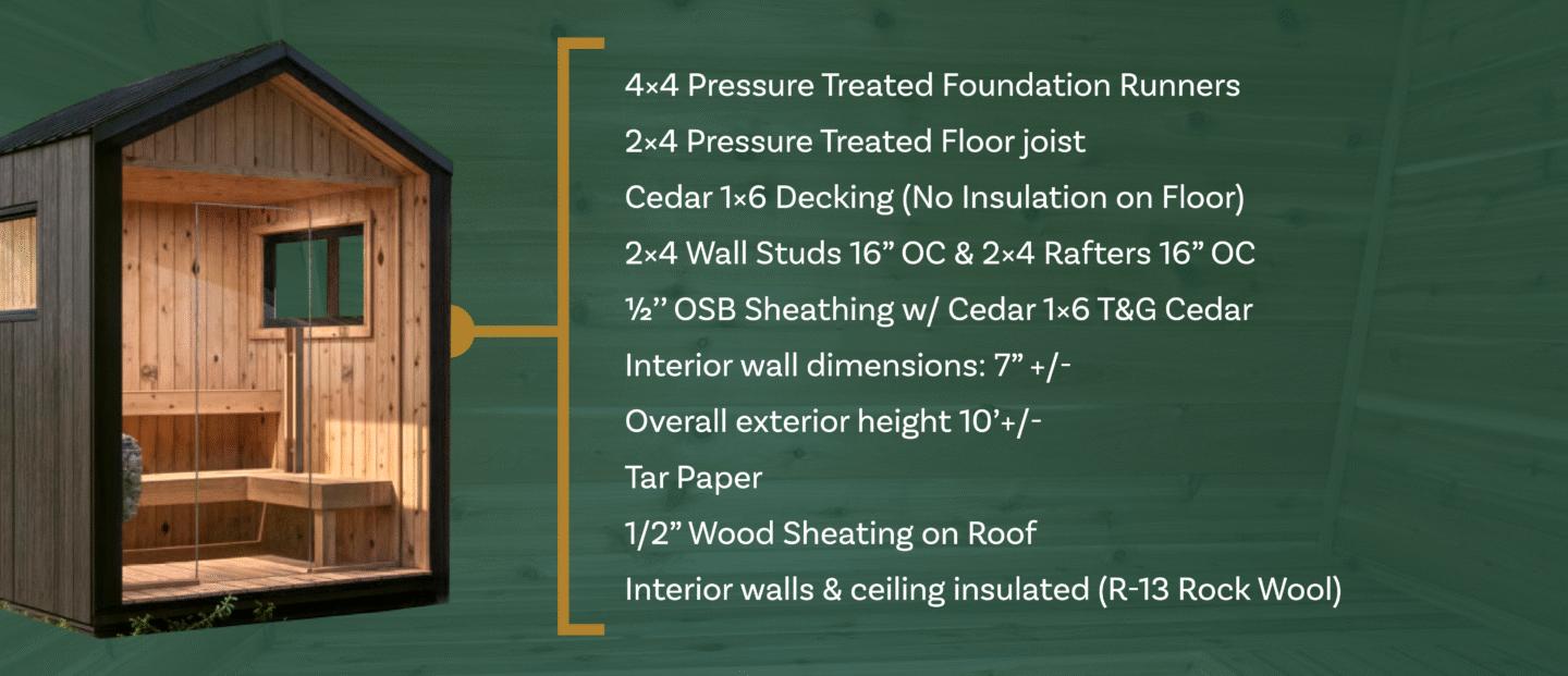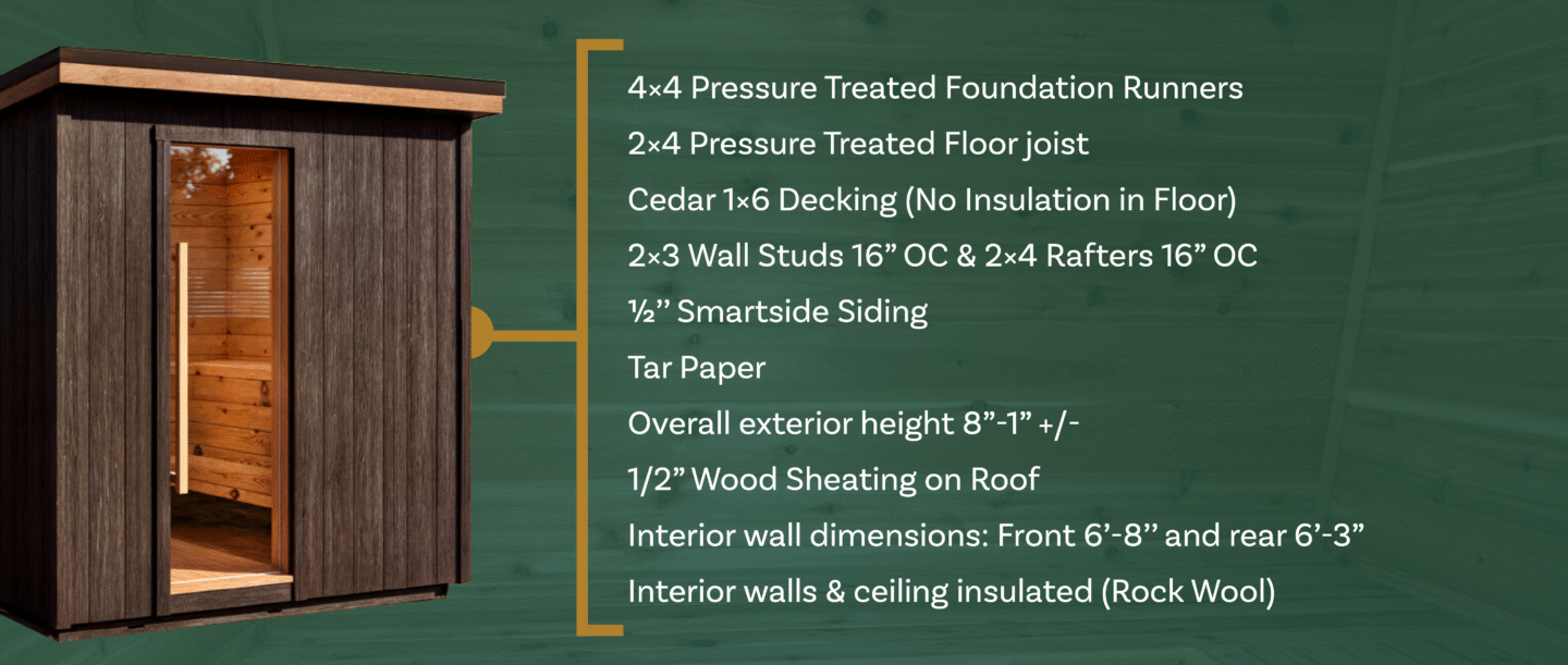 Before looking at what styles of saunas we offer, the area where this structure will be placed is incredibly important to know before moving forward. If you want your sauna against another structure, like a pool house, home office, home gym, etc., what kind of roof style would best fit this placement? This roof style depends on how you want your sauna to blend in with your other structures, if placed against them. Is there clear access to your preferred space? This is crucial for site prep and delivery of your future sauna and will help make this process much easier when ordering. Once you have your access point cleared, placement chosen, and size constraints on your property, it’s time to dig deeper into the perfect sauna for you.