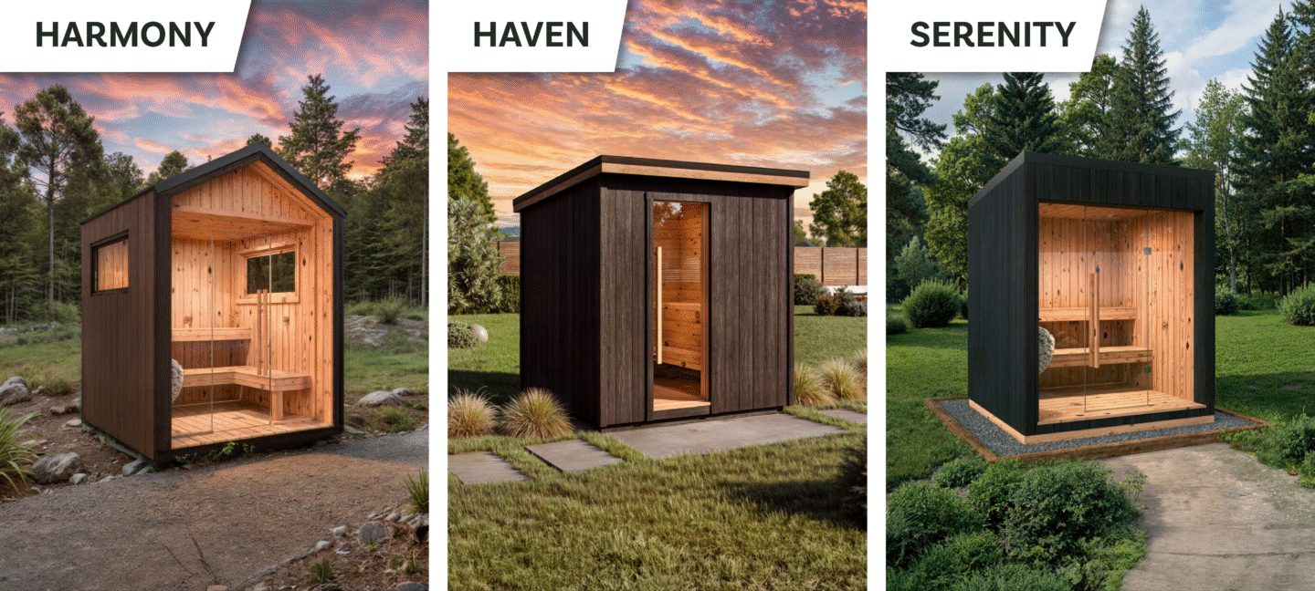 Check out our brand-new Serenity Sauna to see how it morphs the Harmony and Haven sauna features into one beautiful backyard structure.
